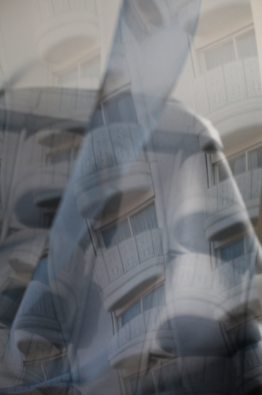 建築家・ 村野藤吾を祖父に持つアバロス村野敦子は、阪神淡路大震災で倒壊した祖父の自邸への追憶を起点に、それまで撮影してきた建築の写真群(現存しない建物を含む)を、自身の「体験」のイメージとして再構築しています。建築は一目で全容を把握することが難しく、またある時代を人とともに歩むという意味で時間的です。自らの「人生の出来事」として祖父の建築をまなざす写真家は、「記録」のイメージとしてではなく、建築との対話の表れとして写真を捉えます。それは現在の一瞬を平面化するという写真の限界を自覚しつつも、この現在を未だ見ぬ誰かに受け取ってほしいという期待とともに、様々なる物語を生みまた失われていく建築に向き合い続けた痕跡です。こうした写真を通して「建築の本当の当事者とは誰なのか」を問い直すアバロス村野敦子の作品を、村野藤吾が設計した建築空間のなかでご覧いただきます。