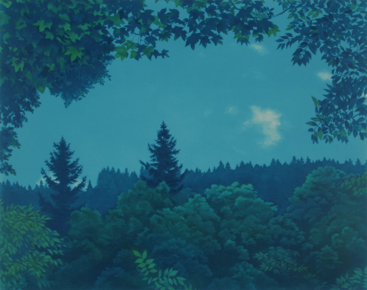木々の梢に囲まれた画面の向こうに青い空がのぞく風景画を、魁夷は《緑の窓》と題した。この窓は建築物ではなく、木々のこちら側と空が広がるあちら側を区切りながら繋げる、広い意味での「窓」といえる。