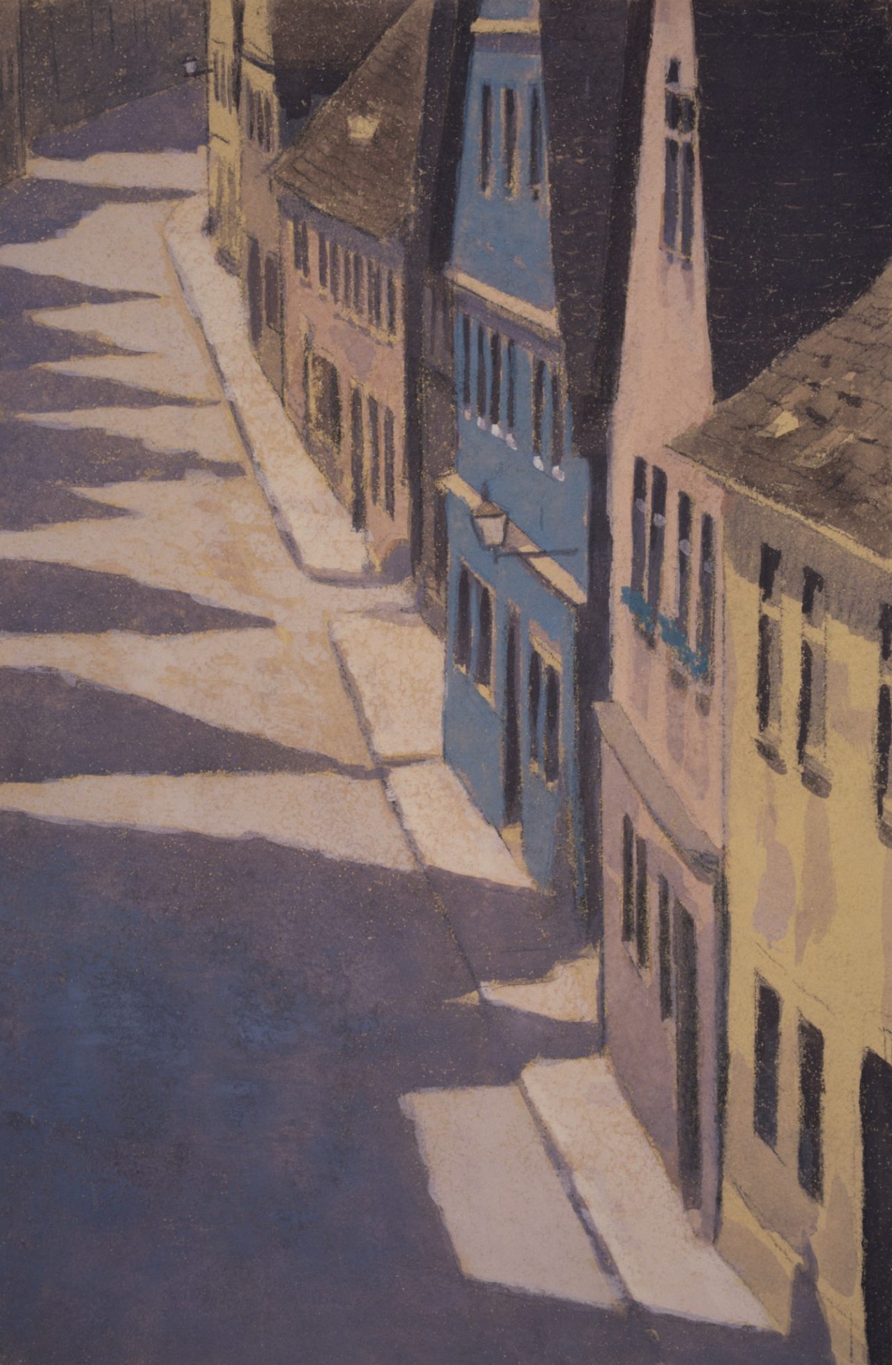 《夕かげ》では、色とりどりの家、窓、影が対角線上に連なってリズミカルな画面を生み、《エルシノアの街》では、同じ形を繰り返す窓枠が画面にリズムを生んでいる一方、ひとつひとつの窓にはカーテンの開き方などに細かな変化がある。