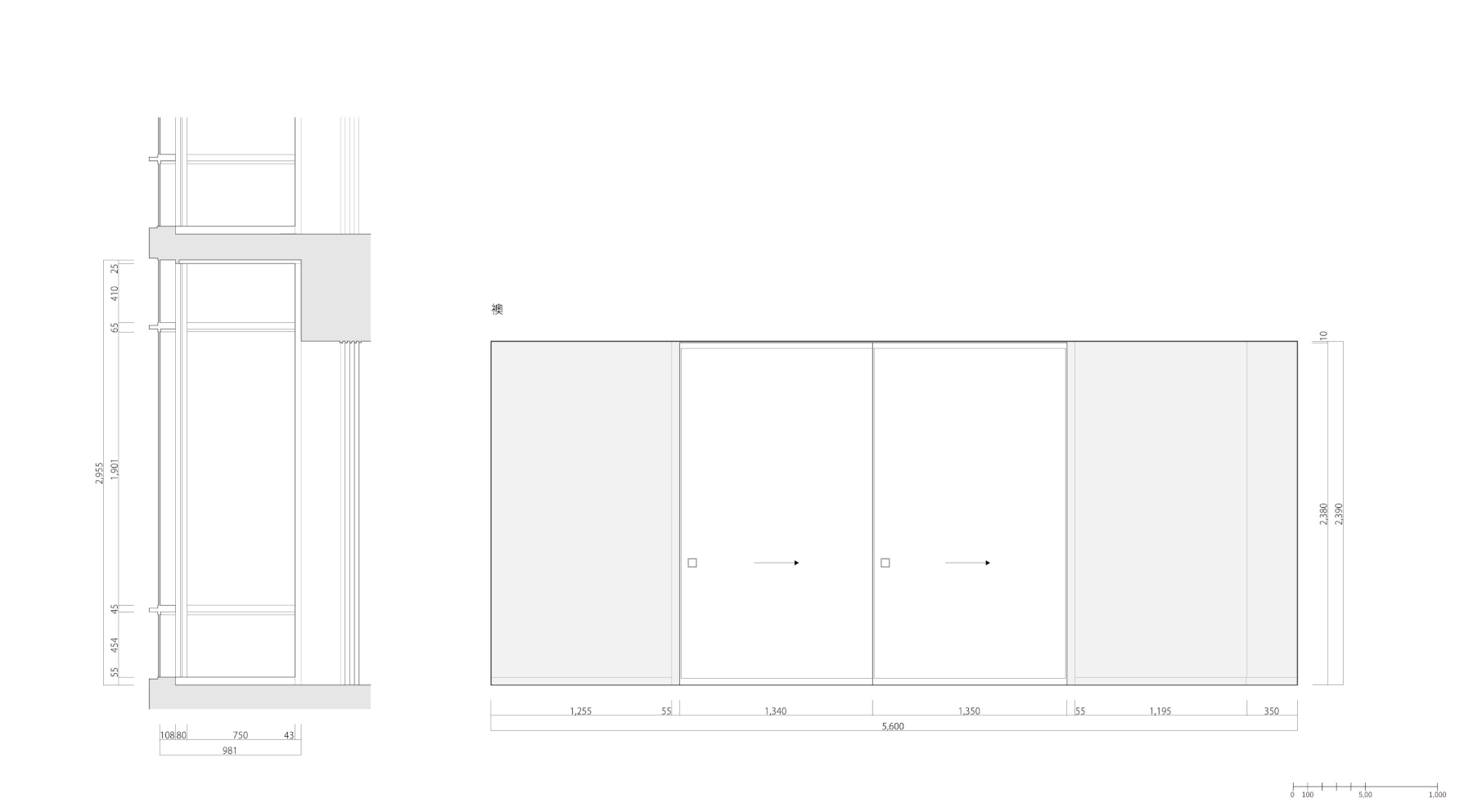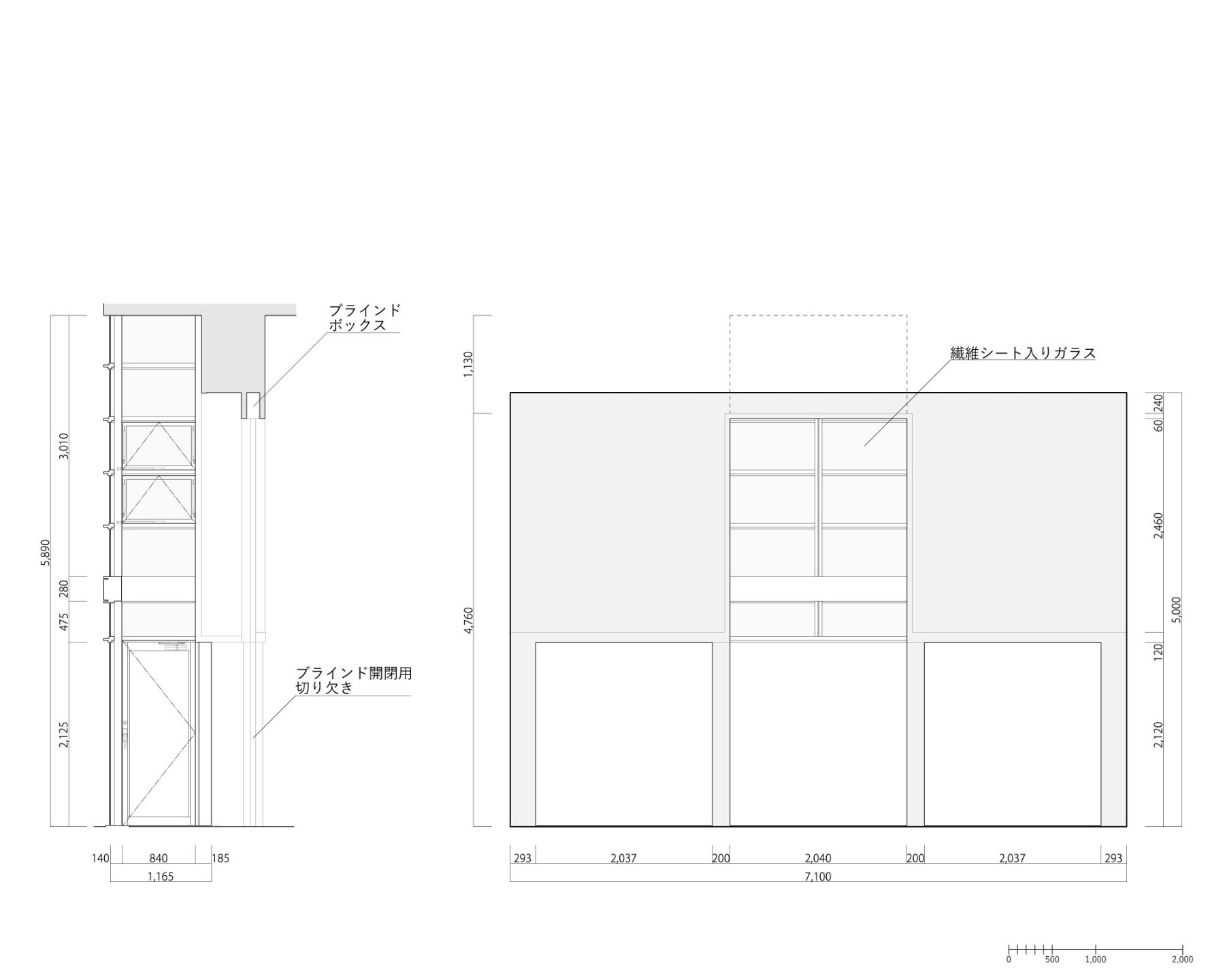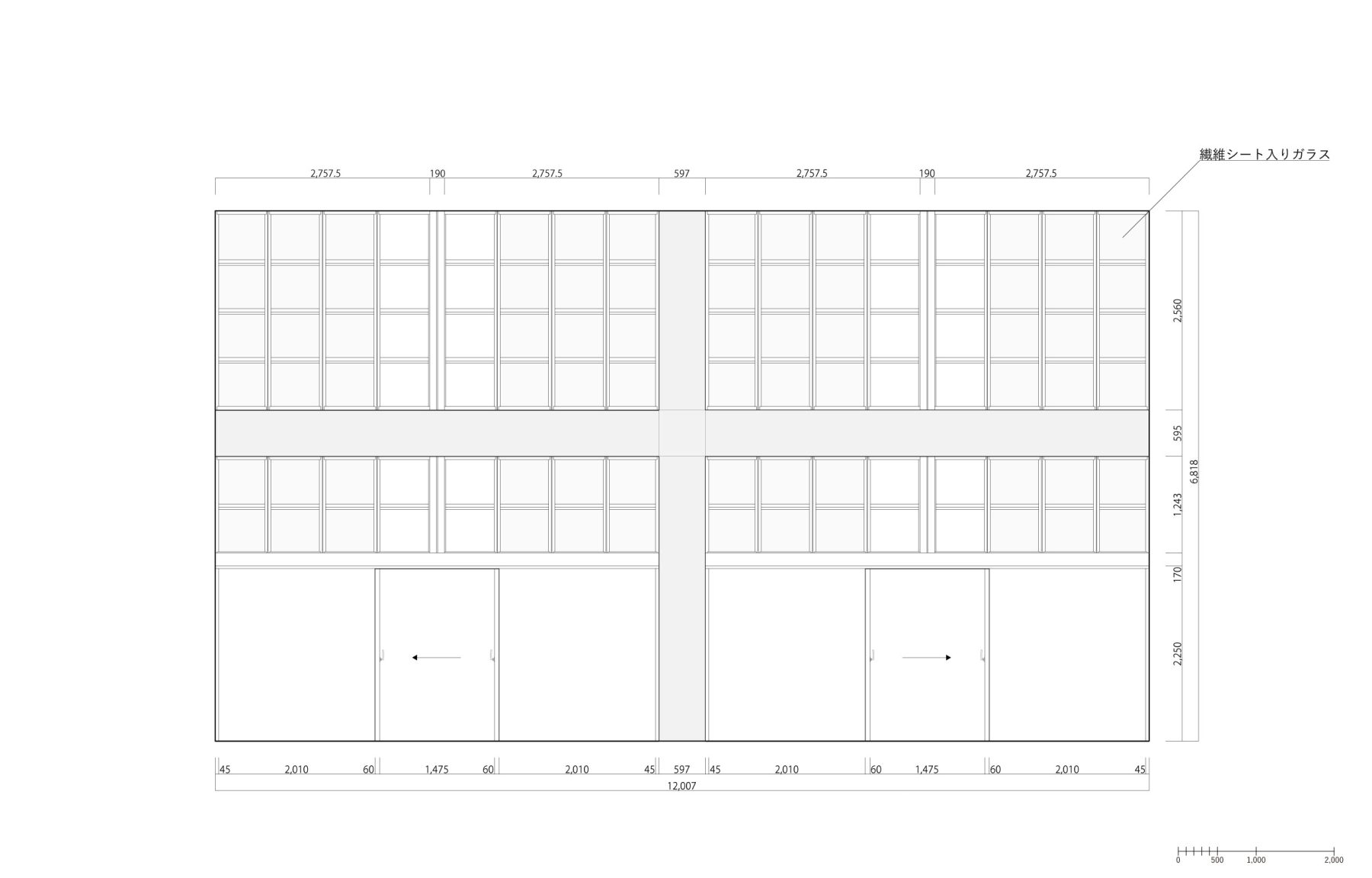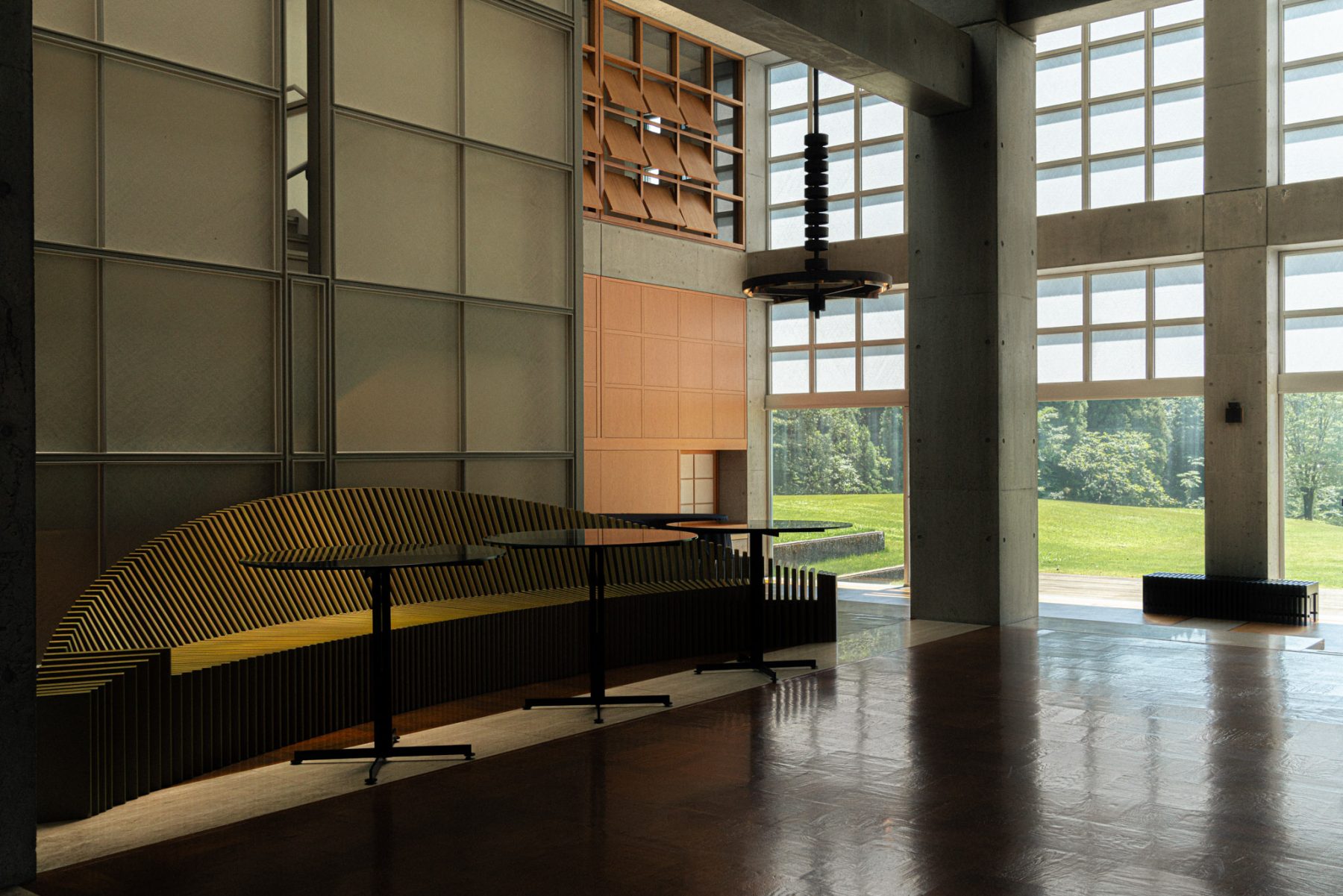 「凸と+」が造形のモチーフに使用された企業の研修宿泊施設。正面外観は切妻の妻面と宿泊室にとりついた出窓が垂直性を強調する。宿泊室の出窓は家族室を除いて、個室4つで壁、床を隔てて共有されている。障子戸、板戸の2枚の引き込み戸により、明るさと開放の度合いをコントロールする。出窓側は室内側に比べて500mmほど高さ方向への広がりがある。ホールの大開口の上部にはガラス繊維シート入りのガラスを用いて障子風の意匠を実現し、透明のガラスとの対比で凸型が浮き上がる。一方でセミナー室の窓は同じく凸型だが、壁面に対して窓がセットバックし庭との中間領域となっている。室内の天井面よりも高い位置から光が落ちてくるため、トップライトのような効果を生み出している。