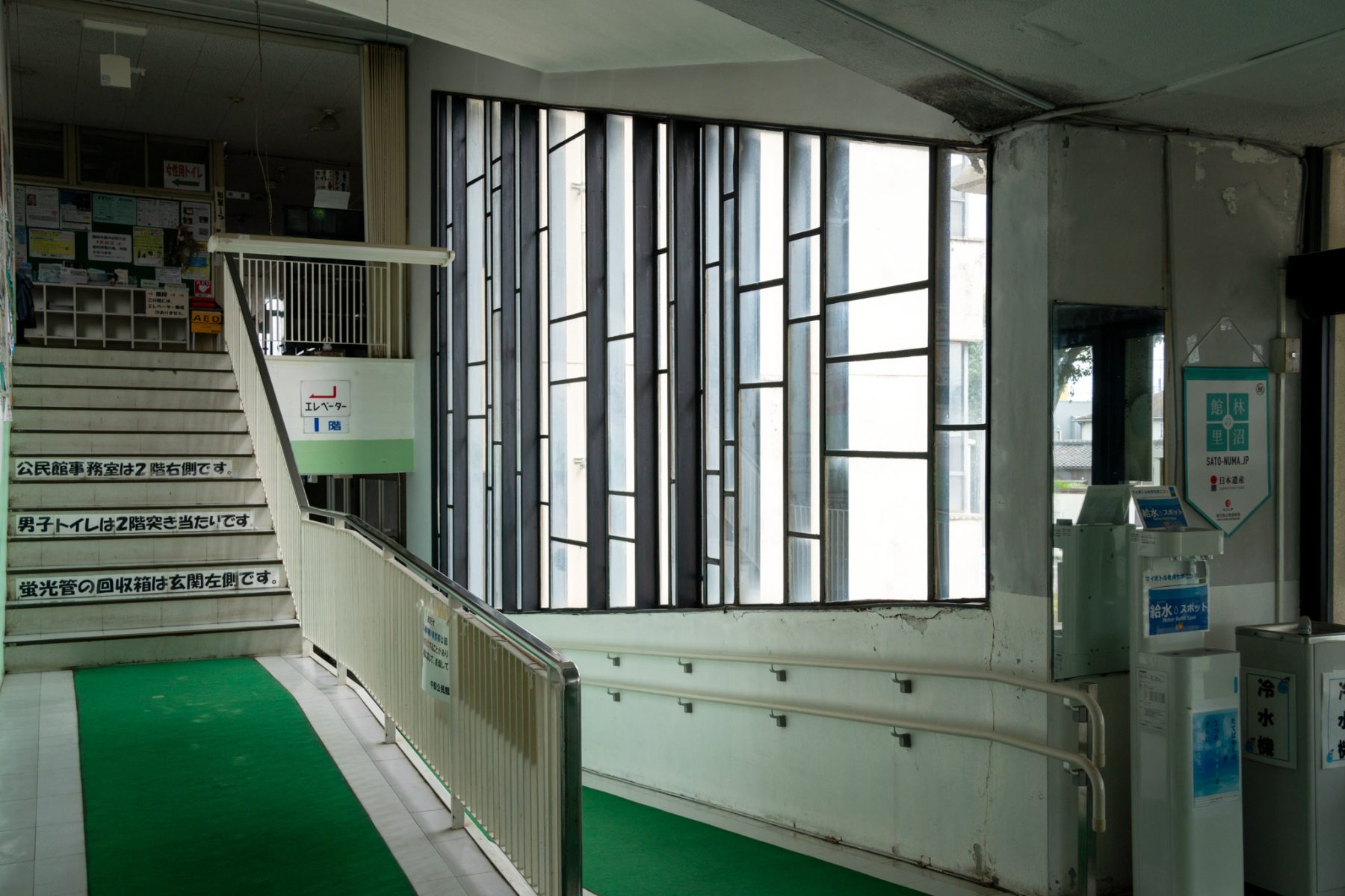 渡り廊下 縦格子窓