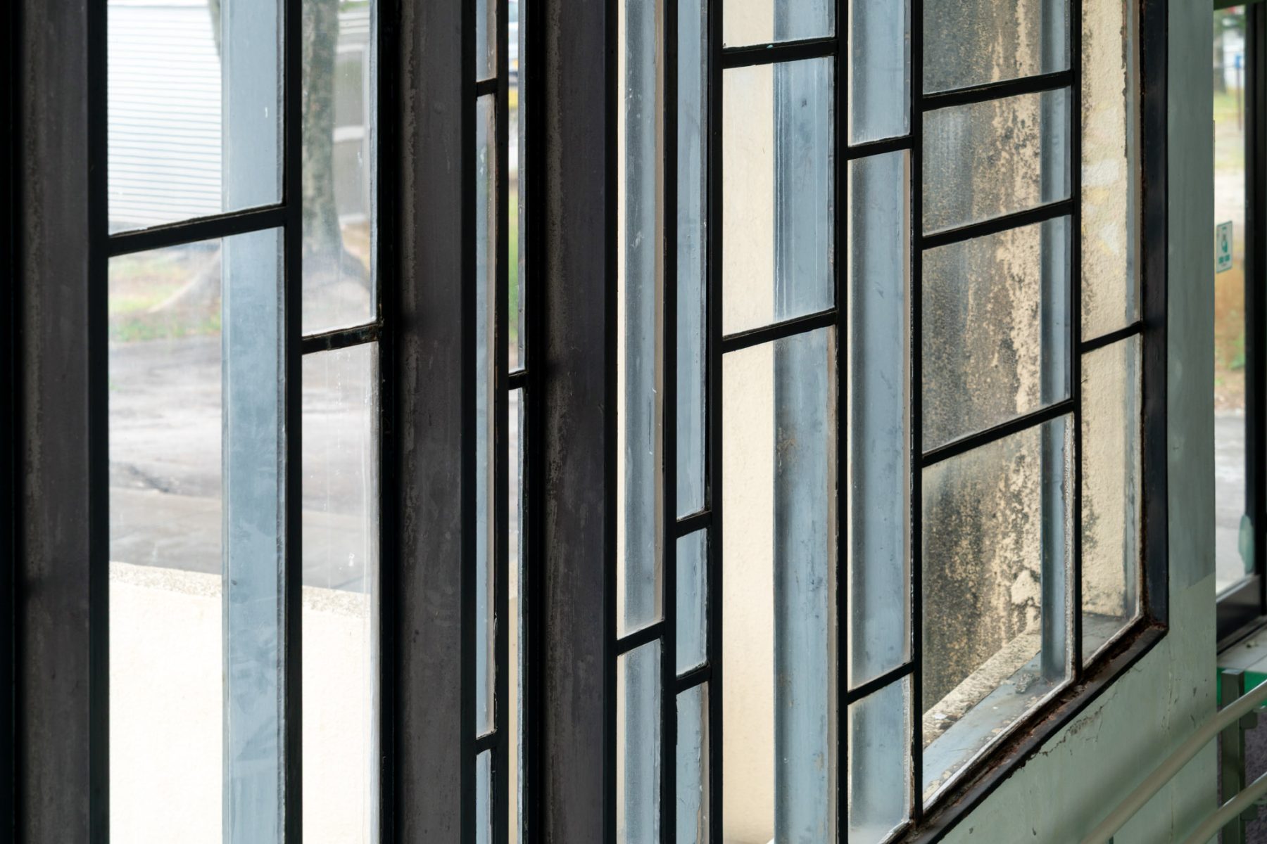 渡り廊下の縦格子窓