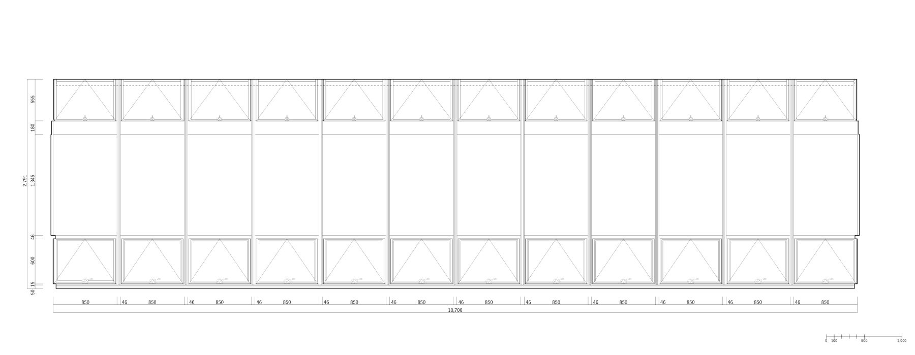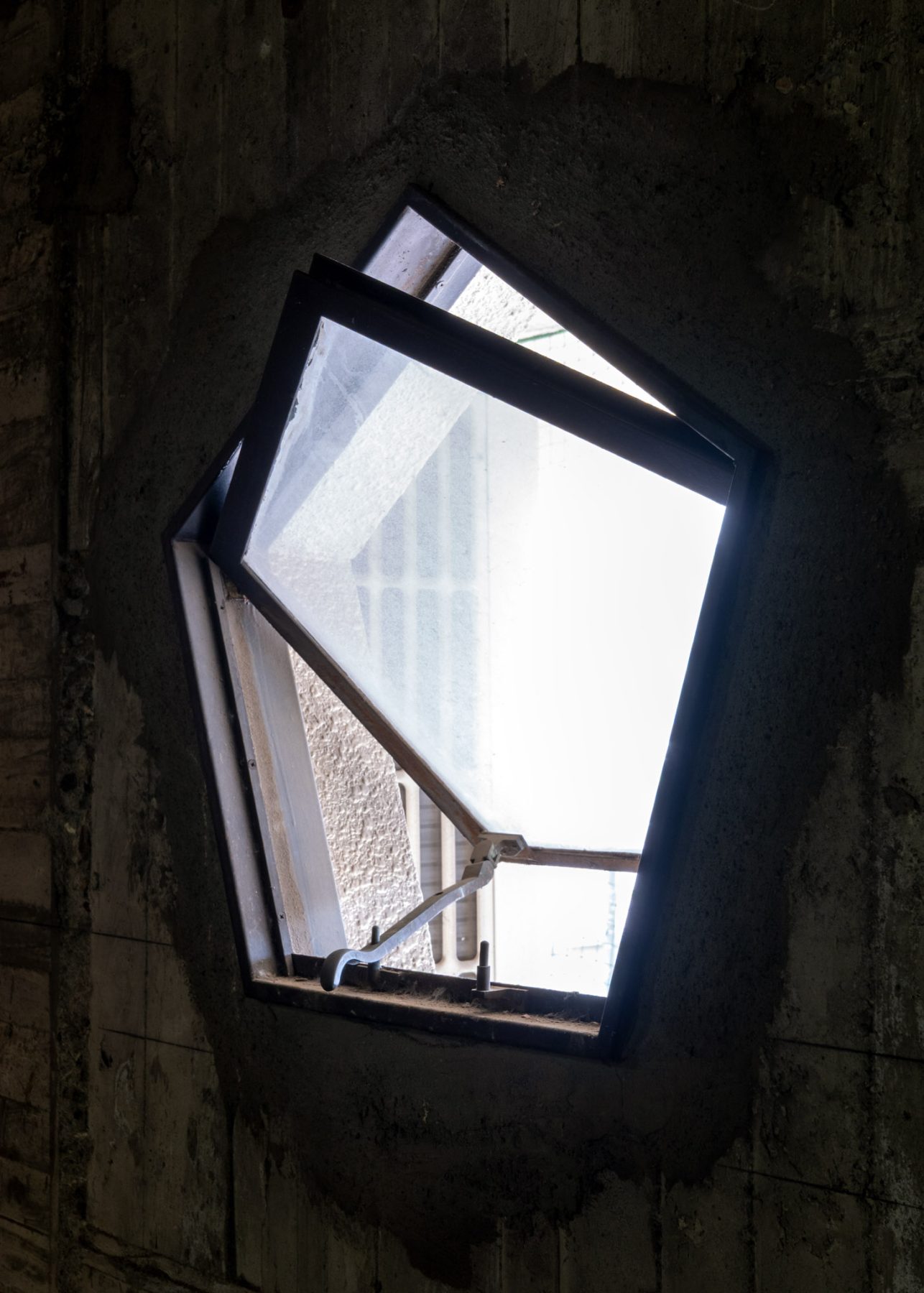 書庫の五角形の横軸回転窓