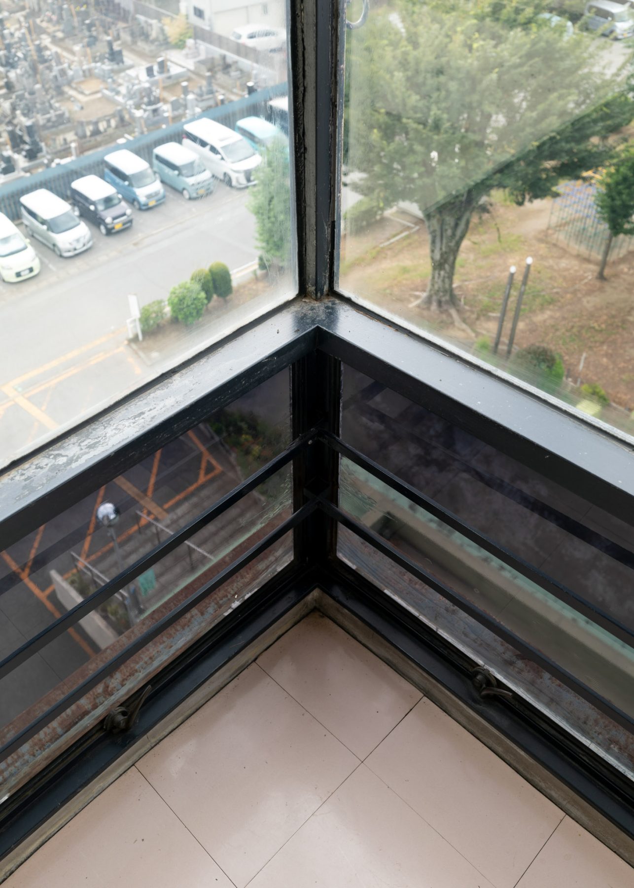 踊り場の大窓