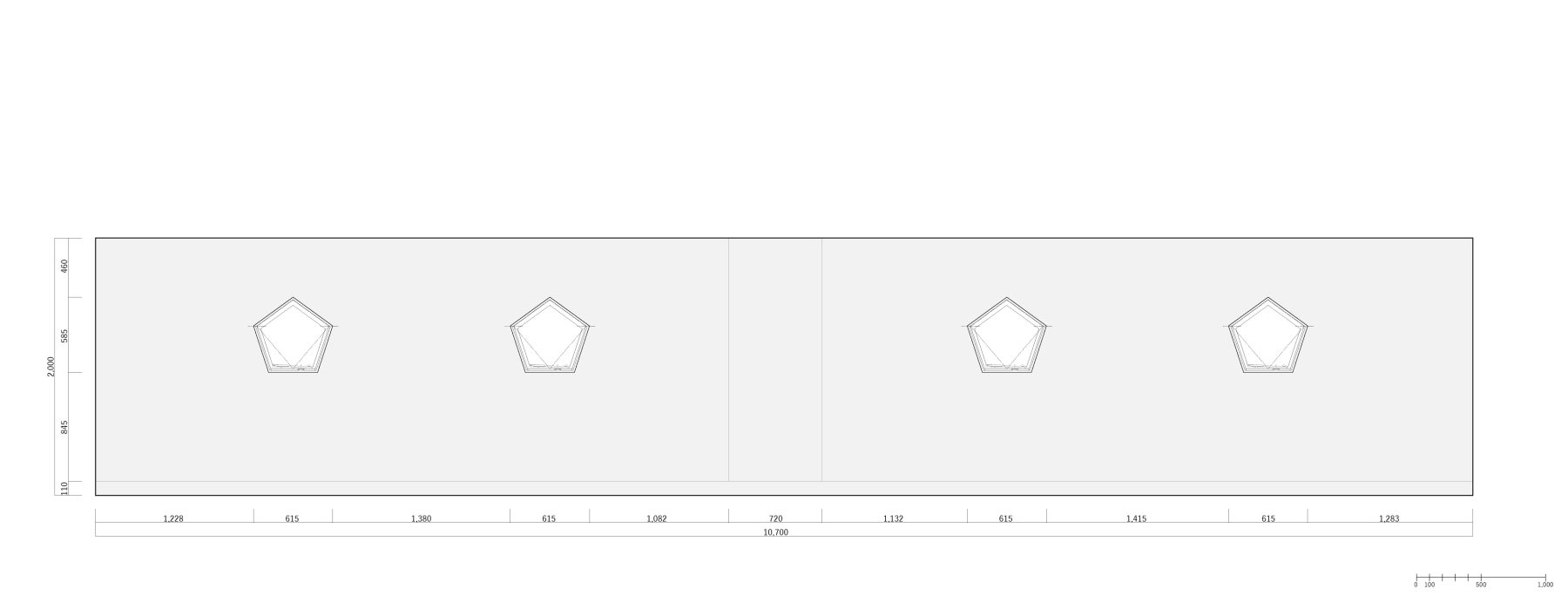 書庫 五角形の横軸回転窓