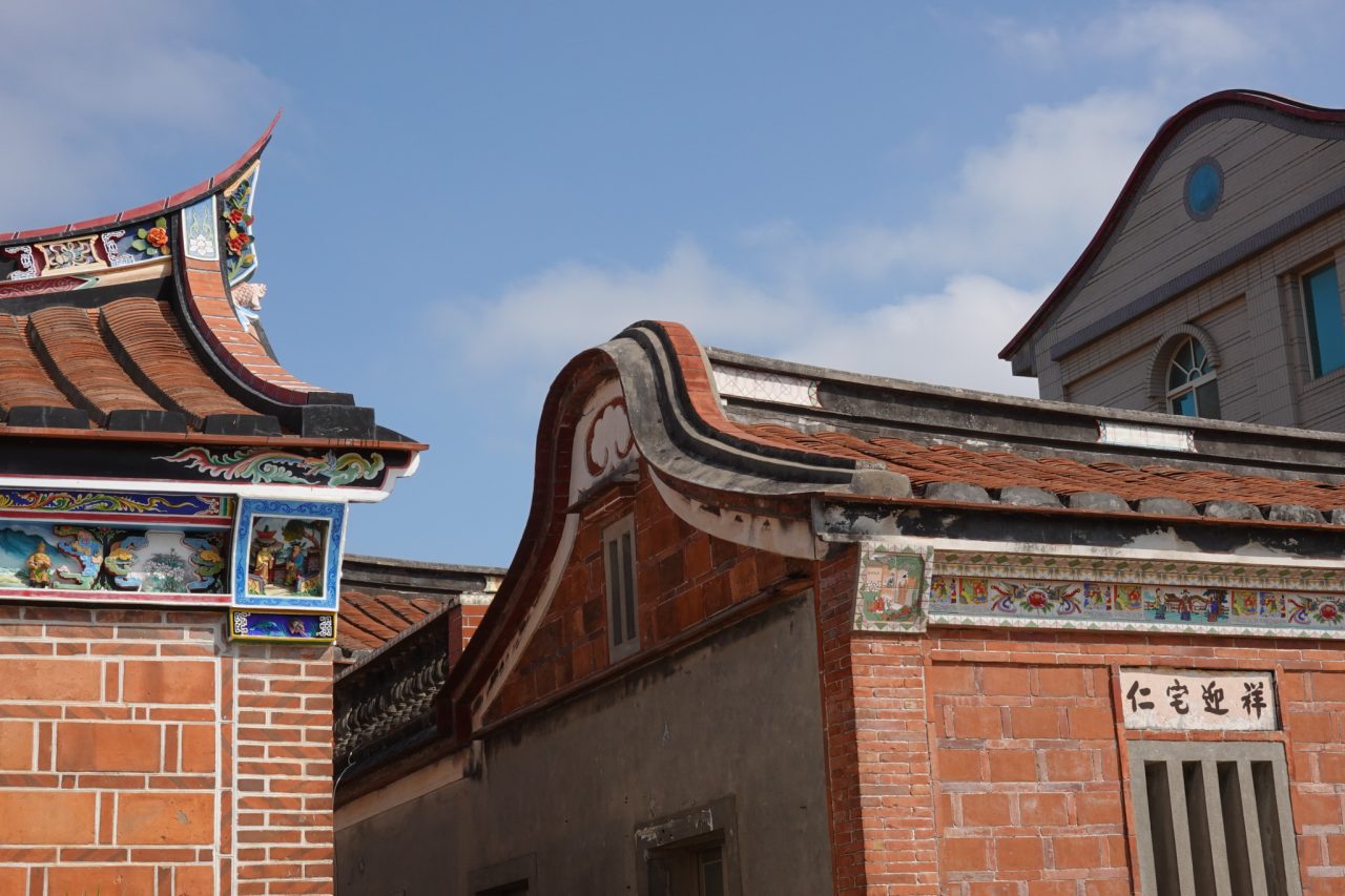 As I walked through villages, I began to see the underlying way their structures were made. At their base is stacked yellow granite. Stones like these were used to make entire homes on the Matsu Islands, but the architecture here involves placing red bricks on top of them. Old windows have granite frames and inset vertical lattices, making them difficult to destroy. The relationship between their entrances and walls is unusual as well. The height of their walls changes depending on the door’s height, making it appear as though these walls were built according to that opening, rather than an opening being made on the walls. Structures with internal level changes show such shifts in their window positioning and roof height, making it easy to imagine from the outside what it might look like inside. I found Minnan architecture enjoyable to look at thanks to these uneven rooflines created by the influence of all these elements as well as because of the practical ways in which everything is brought together.