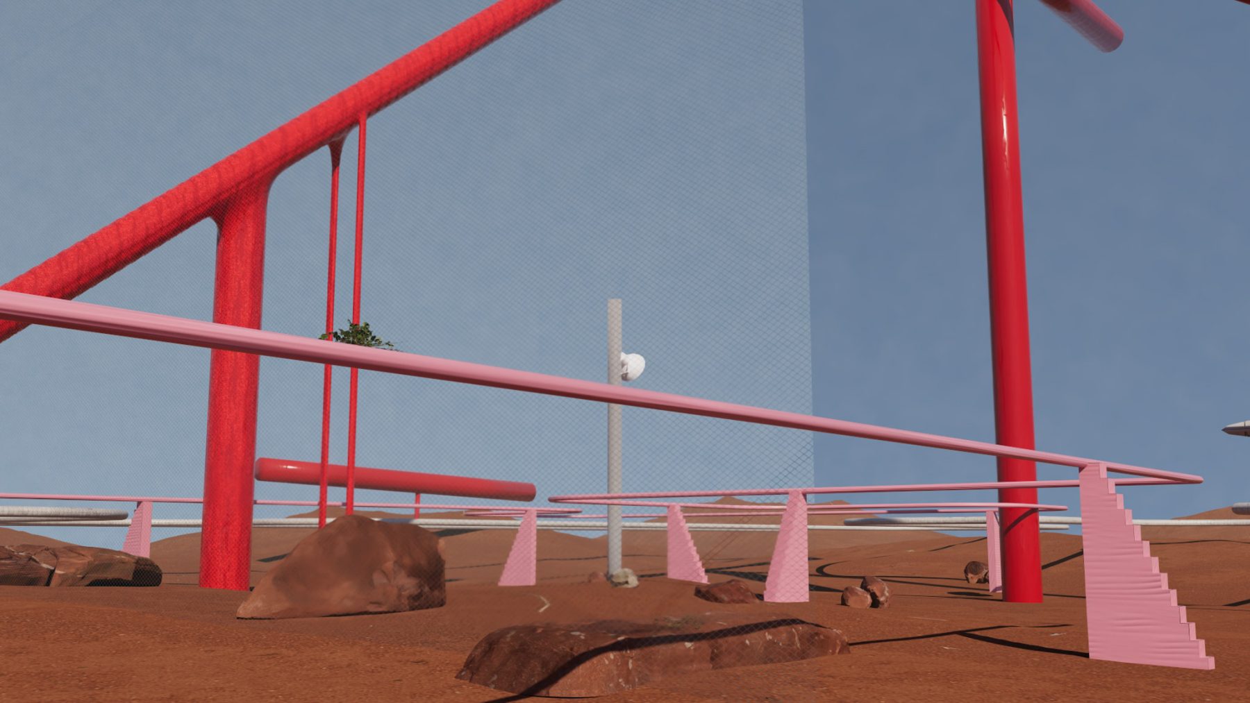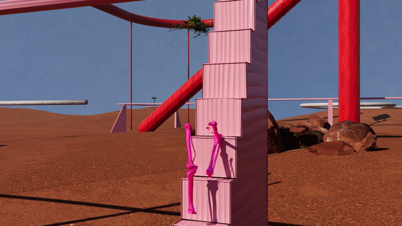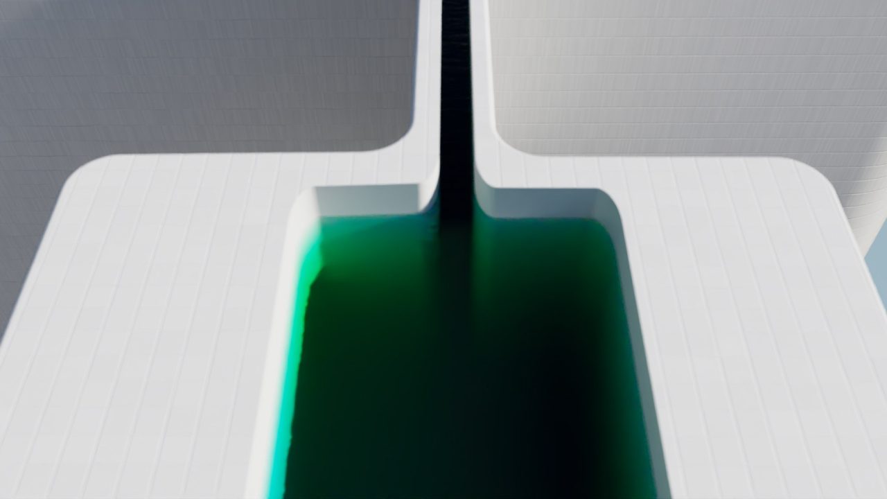 場所と場所が、時間と時間が、文字通り重なり合う。波の上にも、ヴェネチアの石畳の上にも、3DCG空間の座標系の中にも、同時にいる。この往復運動の中にいるとき、制作は充実する。この往還を観客にもひらくために必要なもの──それが「台」だ。台とは、対象の内部へと性急に越境せず、境界にとどまり、持続的に奥を観測するための足場である。何もない荒野では、どこに佇めばいいのかわからない。むしろ、明確な構造や(できれば装飾的でなく機能的な)形象があった方が、かえって頭も身体も自由に働き動く。他方で、ある様式や形式に基づいて設計された空間──庭園であれ建築であれ──には、設計者の意図が織り込まれていて、無作為な偶然が介入する余地はないように見えるが、しかしその構造があるからこそ、対象を凝視することと、そしてそこから逸れて連想を展開することが両立する。