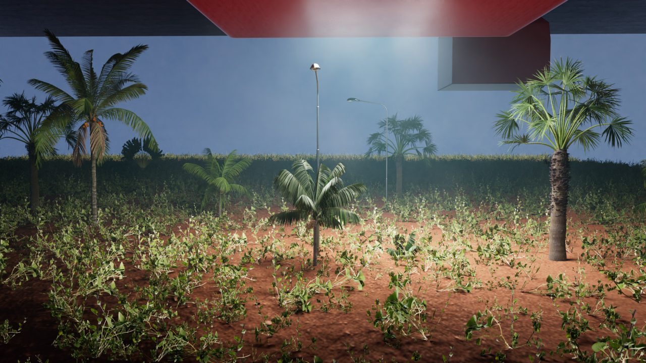 砂漠のショッピングモール。オレンジ色に発光する店舗の前に糸杉が立っている。街灯が巡回する時間帯。真っ青な空、明るい。週1、作業員による渾身の剪定。切り落とされた葉、丁寧に回収され、それでも大理石の床に残る屑、粉。深緑色の点は少し気持ち悪くて、手で口を覆う。私が黒いヤシの木の幹をぽきっと折り、縦にしてくっつける。写真の前には岩とバスタブが置かれた。周縁の先には何もない。にぎやかな明かりが唐突に終わる。門はなく、モニュメントもなく、最後のガソリンスタンドがあって、くすんだ青い作業着を着た人がいる。