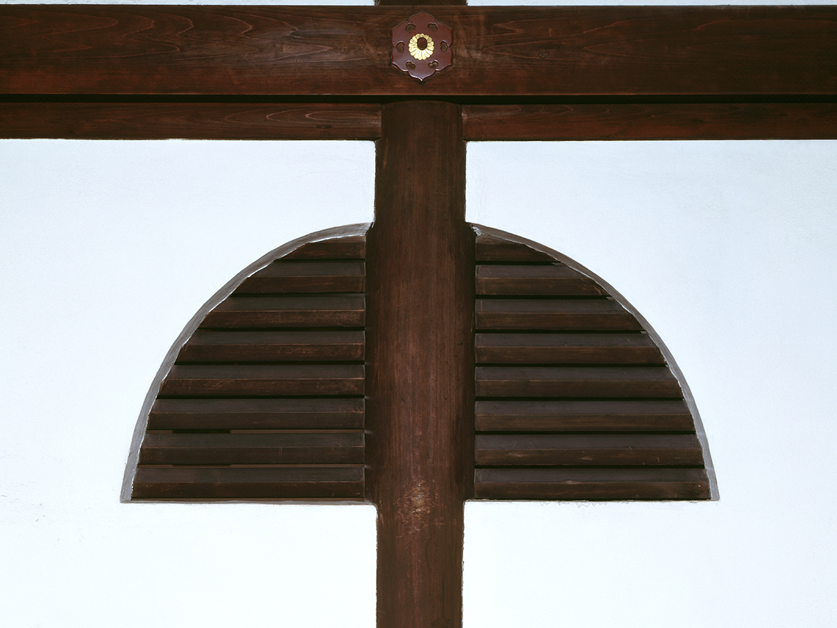 櫛形(半月形)の曲線をなす窓。主に附書院や茶室に見られる。附書院では押板下の開口として設け、内側に明障子、外側に板戸を備える形式があり、このような構成をもつものは松川火灯窓とも呼ばれる。茶室では外光の取り込みと意匠の両面から、鴨居上の小壁や欄間に下地窓として設けられる。平安時代の宮廷建築にもみられ、『徒然草』には閑院殿に縁のない櫛形の開口があったことが記されている。京都御所清涼殿の母屋には、天皇が殿上の間の側近の様子を見渡すため、柱を挟んで高窓として設けられた例がある。