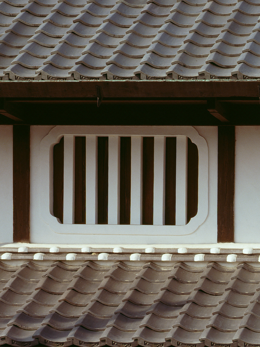むしこまど(虫籠窓) むしこまど(虫籠窓) 細い竪格子を土壁に塗り込めて設けた格子窓。土塗りの壁面に細い竪格子を密に並べて、その一部を外部に露出させる形状で、格子の周囲は土や漆喰で塗り込められる。通風や採光の目的で設けられるとともに、外部からの視線を遮る役割をもつ。近世の京都・大阪・奈良などの町家にみられ、厨子二階の正面壁に設けられることが多い。近世初期には出格子風の形式もみられるが、のちに格子を土壁に塗り込める形式が成立した。 ⇨ 格子窓 熊谷家住宅(山口県萩市)主屋二階 西側外観 虫籠窓/写真:岡本茂男 窓の用語集